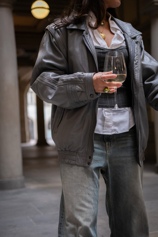 VINTAGE LEATHER JACKET IN RARE GREY COLOR